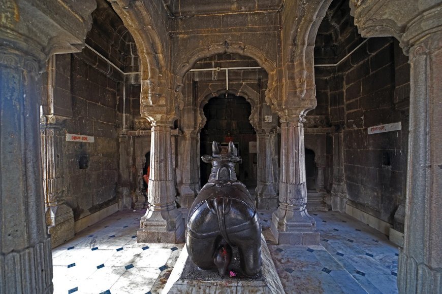 At the absolute heart of Chaundi stands the Mahadev Temple, a masterclass in Hemadpanthi architecture. This structure is not merely a building; it is a giant stone jigsaw puzzle. Built from massive basalt blocks interlocked with meticulous precision, it stands firm without a single drop of mortar or cement. It is a defiant survivor of a medieval engineering style that relies on gravity and geometry rather than adhesive.